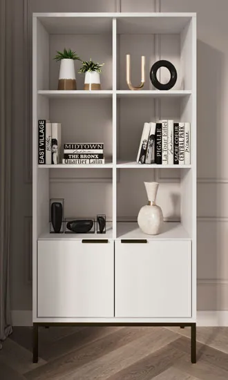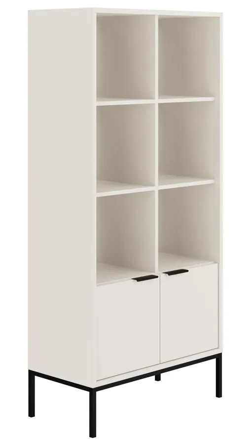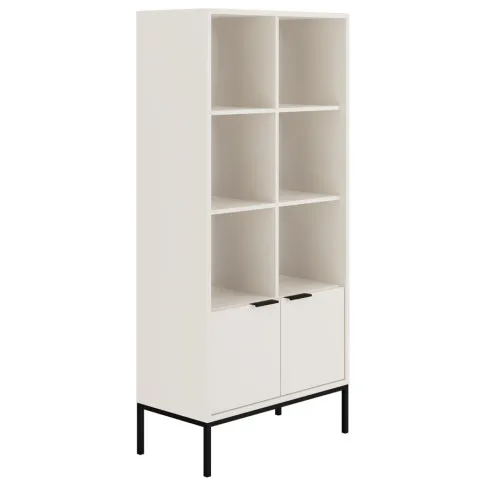 Nowoczesny regał z 6 półkami i drzwiczkami biały + czarny - Pascal 4X