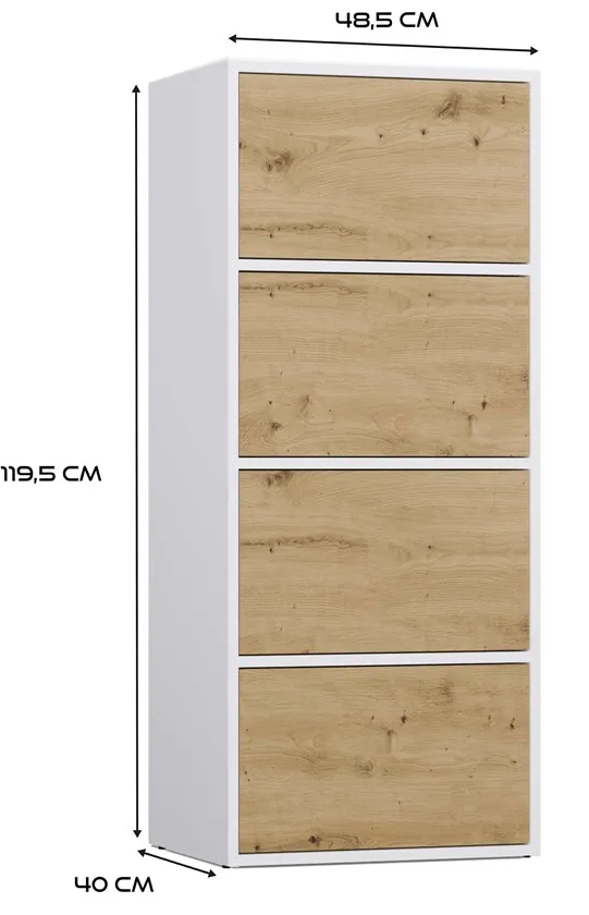 • 4 zamykane półki – maksymalne wykorzystanie przestrzeni do przechowywania, idealne na dokumenty, książki, ubrania czy akcesoria domowe.