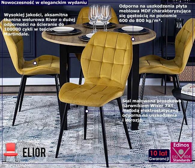 • Kolor: stół: dąb craft+czarny; krzesła: musztardowy.