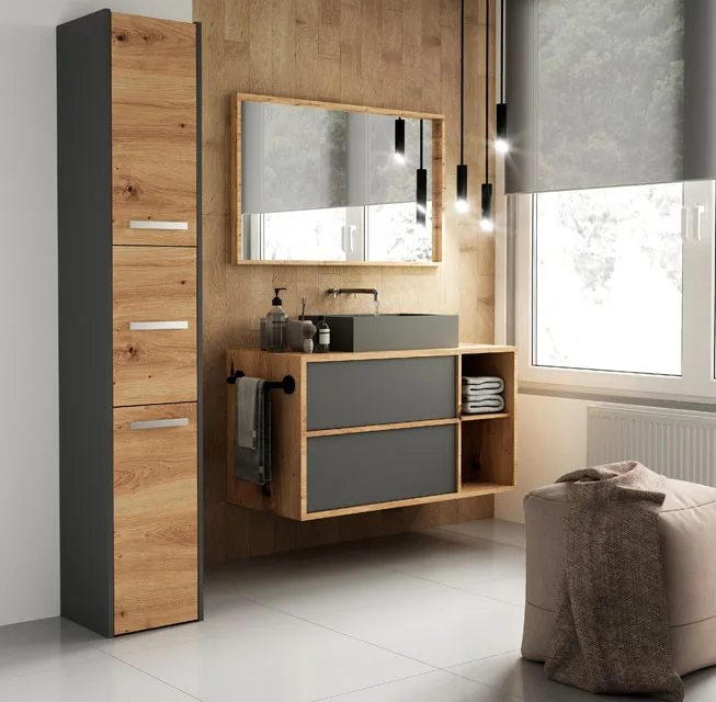 - Kolor: antracyt + dąb artisan. Kliknij w link i sprawdź także inne szafki łazienkowe w sklepie Edinos.pl. Stwórz swój praktyczny zestaw mebli.