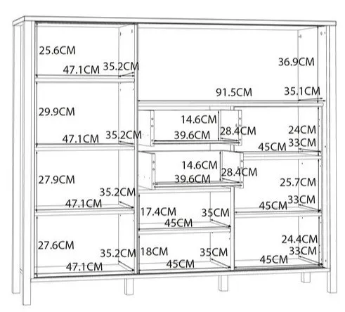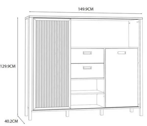 • szerokość: 150 cm, głębokość: 40 cm, wysokość: 130 cm.