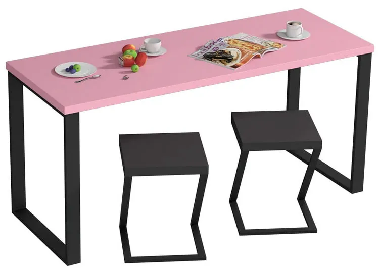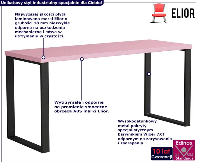 Infografika stołu do jadalni typu loft z różowym blatem Riri