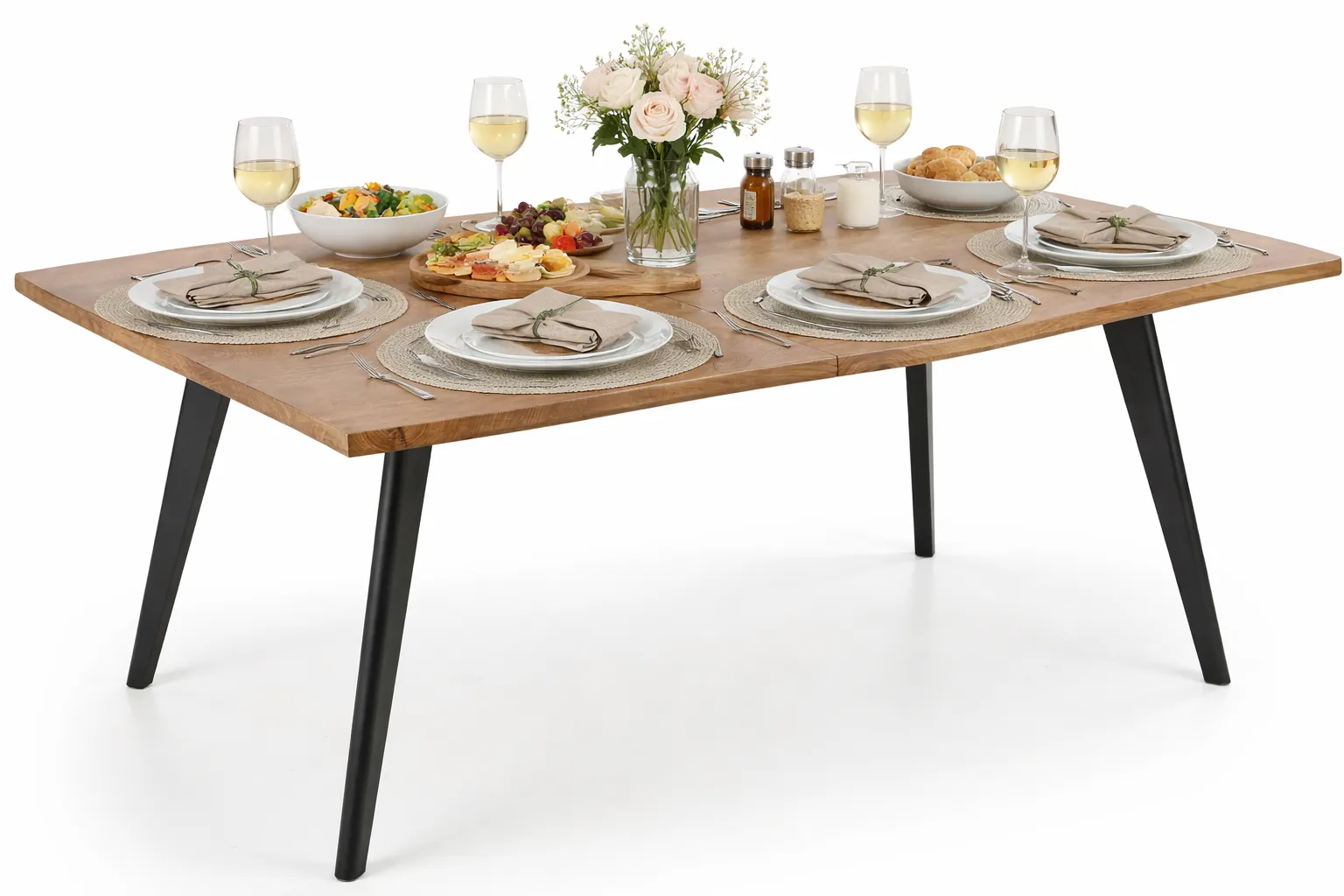 • Blat z naturalnym charakterem – zachowuje organiczne, pofalowane krawędzie, dodając wnętrzu autentyczności.