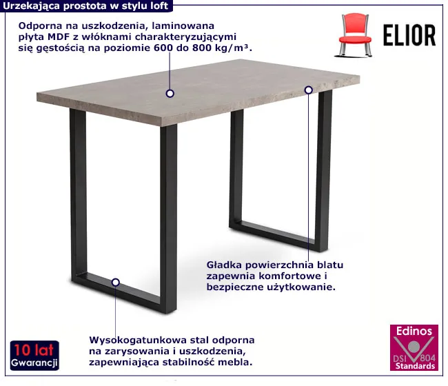 • stalowe nogi wykonane z profili nie tylko dodają stołowi wyjątkowego charakteru, ale również zapewniają jego stabilność i trwałość
