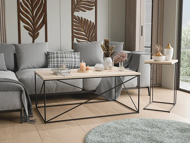 Dotyczy: Industrialny stolik kawowy z czarnym stelażem czarny + dąb artisan - Cordani 4X