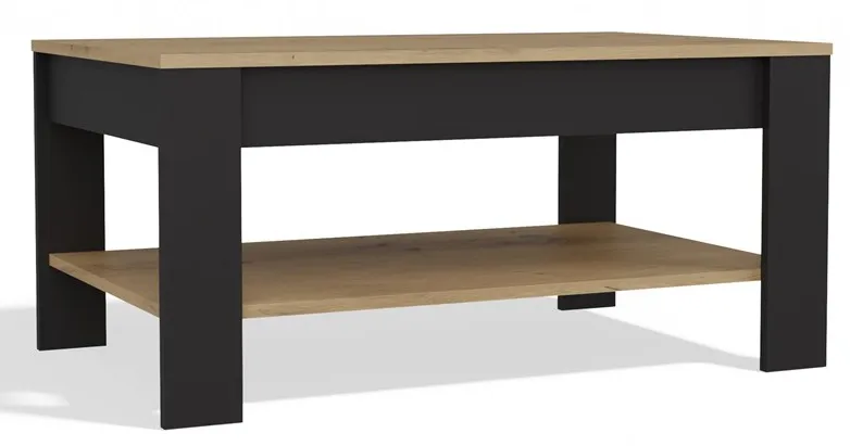 Nowoczesny stolik kawowy z półką dąb artisan + czarny - Orom