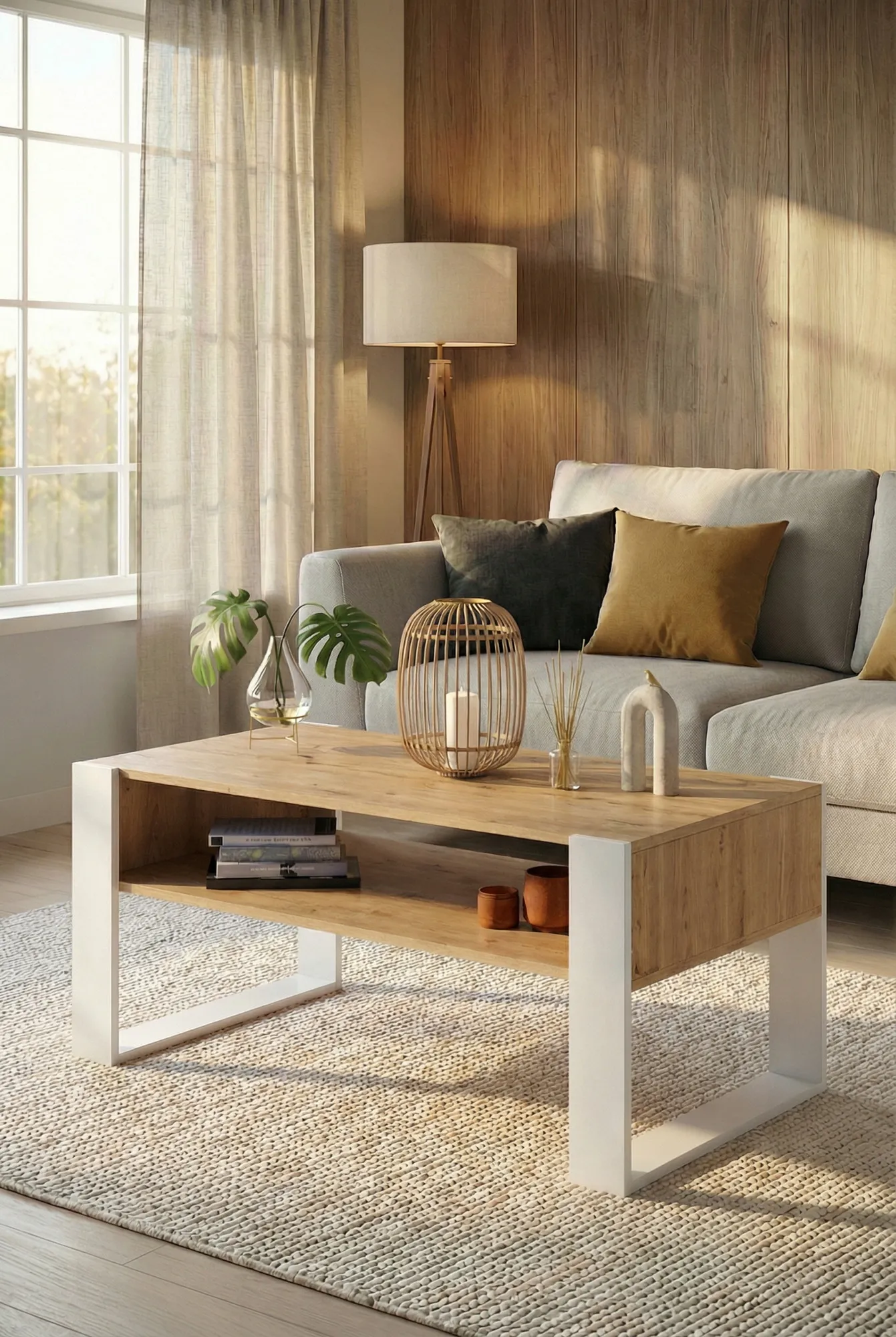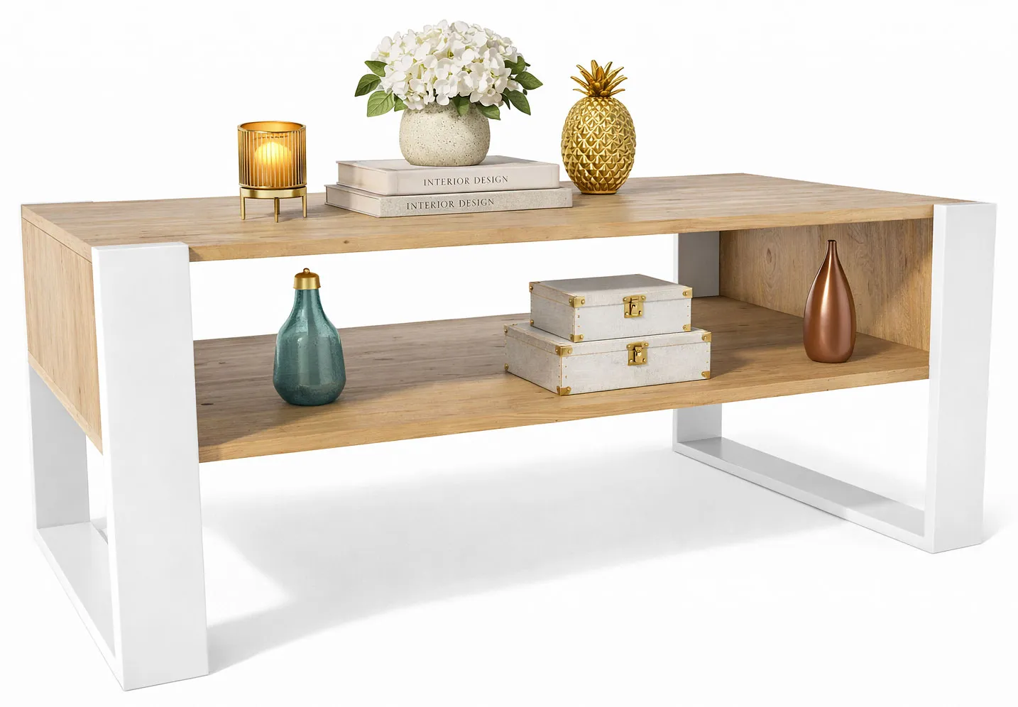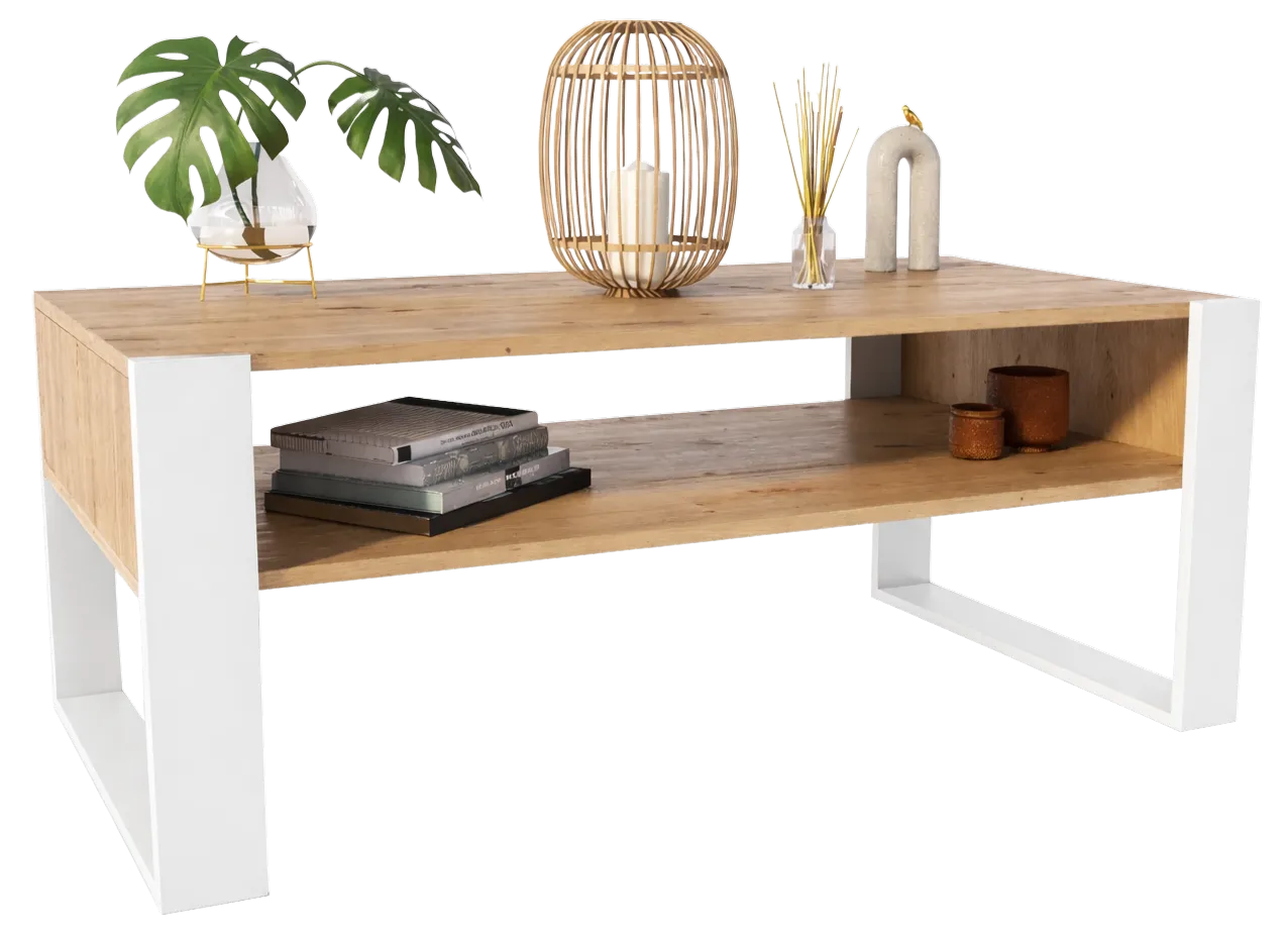 Dotyczy: Ława z półką do salonu dąb artisan + czarny - Bracio 3X