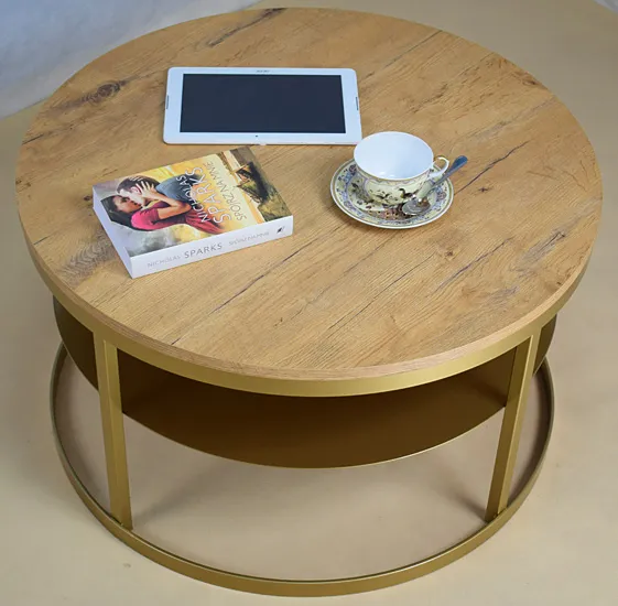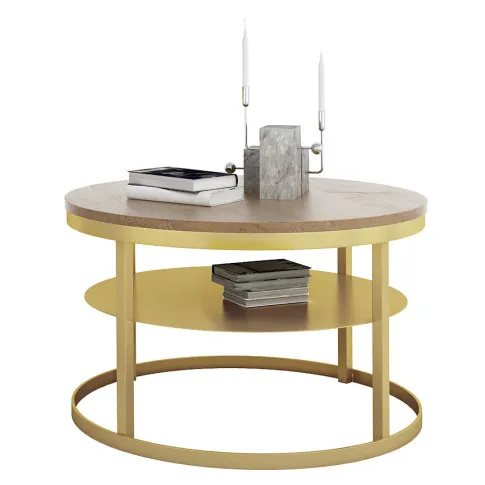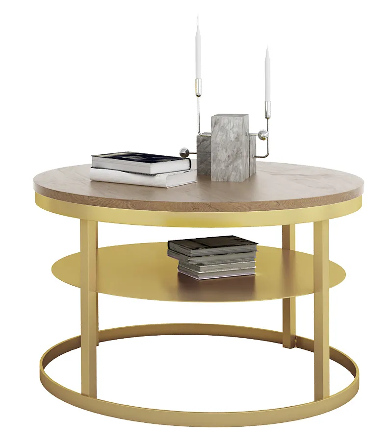 Okrągły stolik kawowy Selpa 3X złoty+dąb lancelot