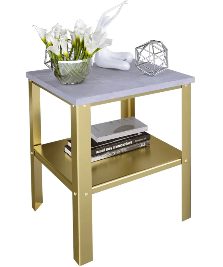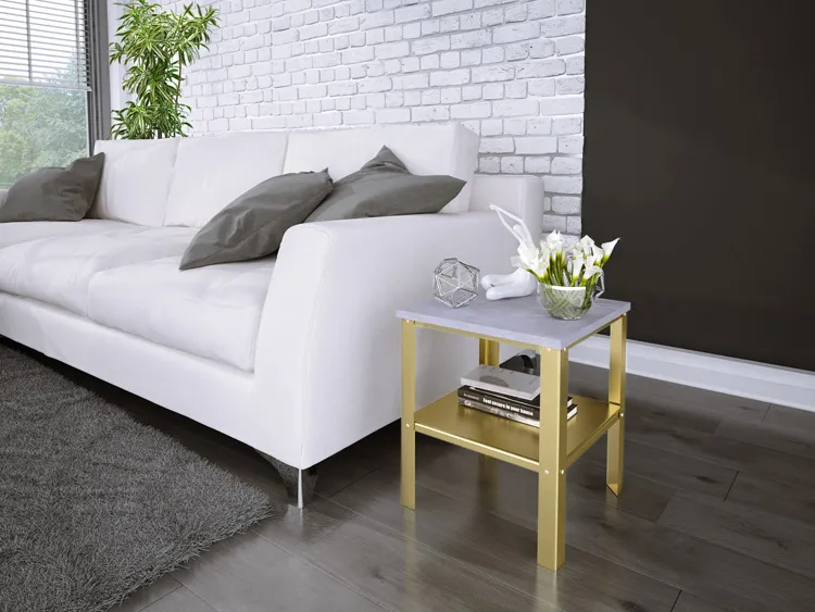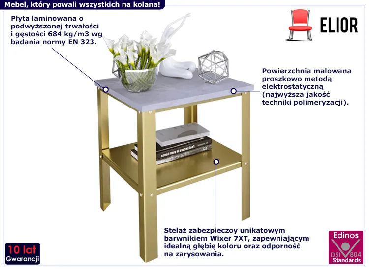 Dotyczy: Minimalistyczny stolik kawowy z półką złoty + biały połysk - Sufix 3X