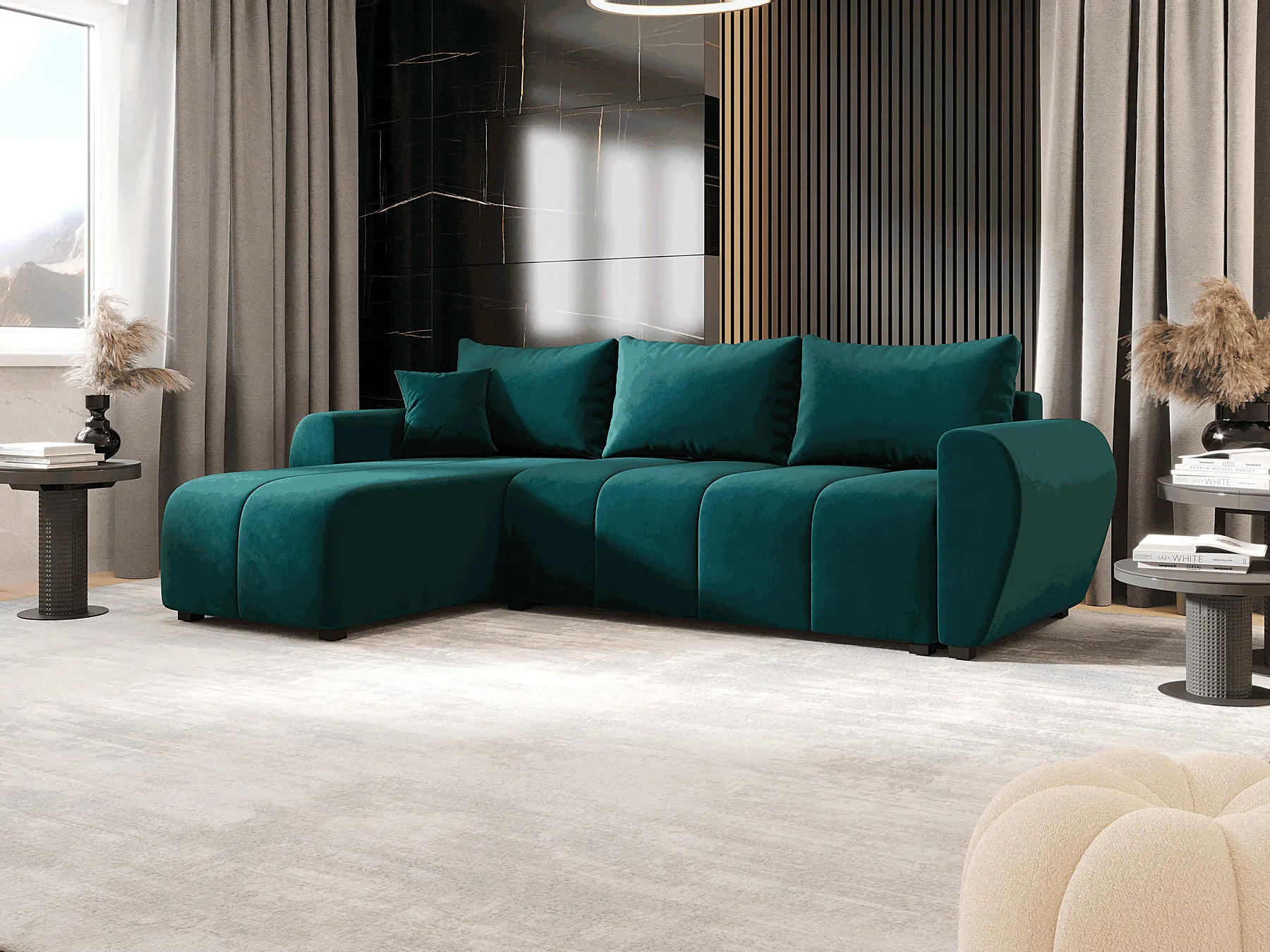 Nowoczesny welurowy narożnik L w kolorze morskim - Velmores 4X