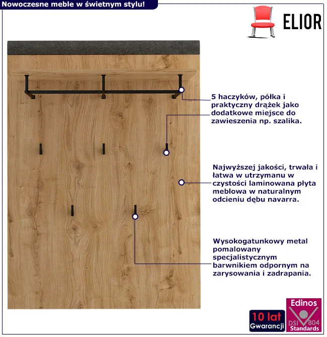 • Kolor: dąb navarra + grafit. Kliknij w link i sprawdź także inne wieszaki ścienne do przedpokoju w sklepie Edinos.pl.