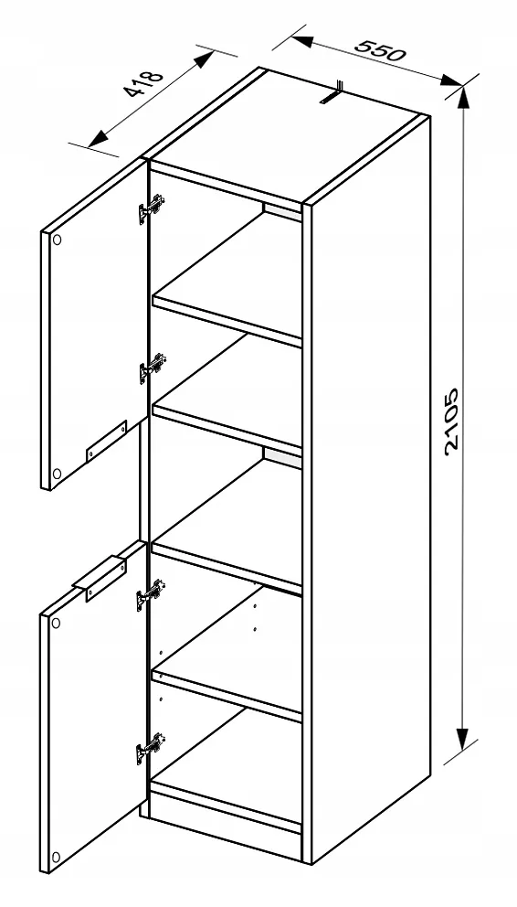 • wysokość 210,5 cm, szerokość 55 cm, głębokość 41,8 cm