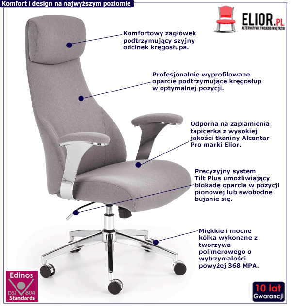 • Kolor: ciemny popiel. Kliknij w link i sprawdź także inne szare fotele biurowe w sklepie Edinos.pl. Stwórz swój praktyczny zestaw mebli.