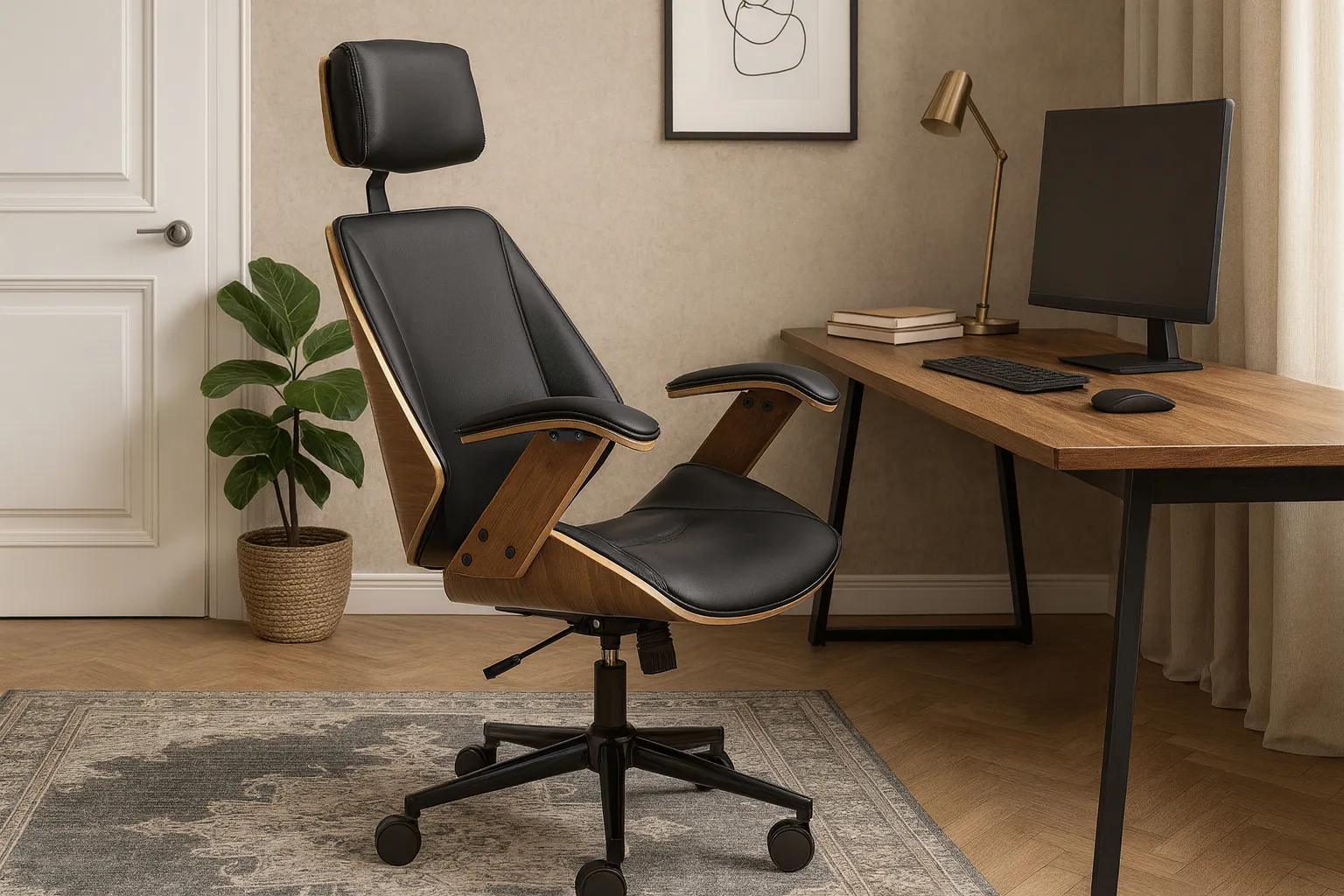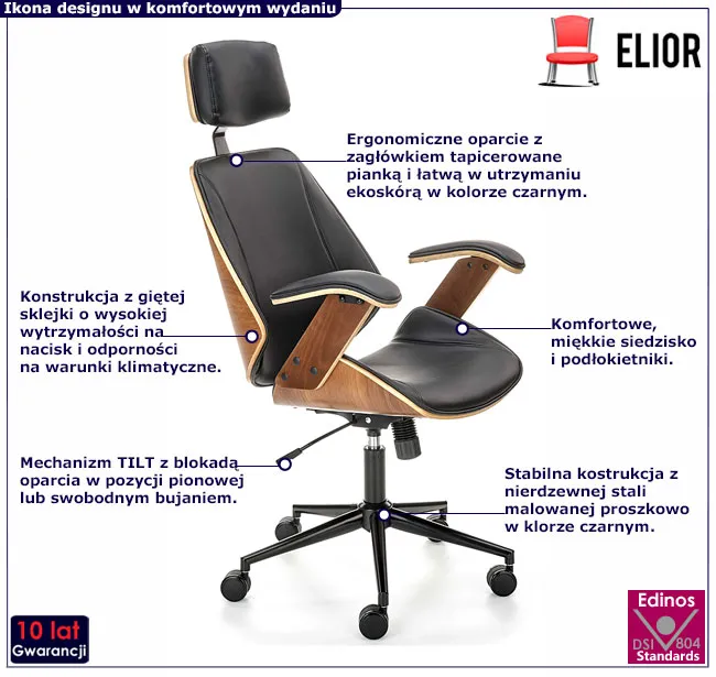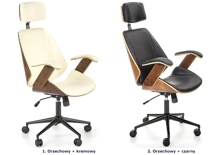 Dotyczy: Designerski obrotowy fotel tapicerowany orzech + kremowy - Hano