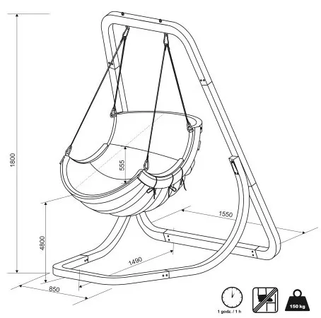 - Materiał: Stojak wykonaliśmy z wysokogatunkowego drewna modrzewia syberyjskiego i stali malowanej proszkowo, które cechują się bardzo dużą wytrzymałością i odpornością na zmienne warunki atmosferyczne. Poduchę uszyliśmy z najwyższej jakości wodoodpornego weluru Fancy 2S marki Elior.