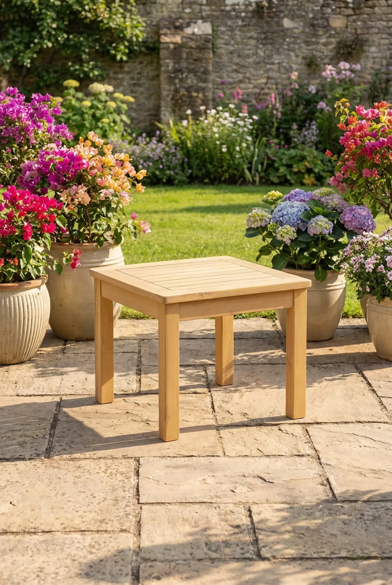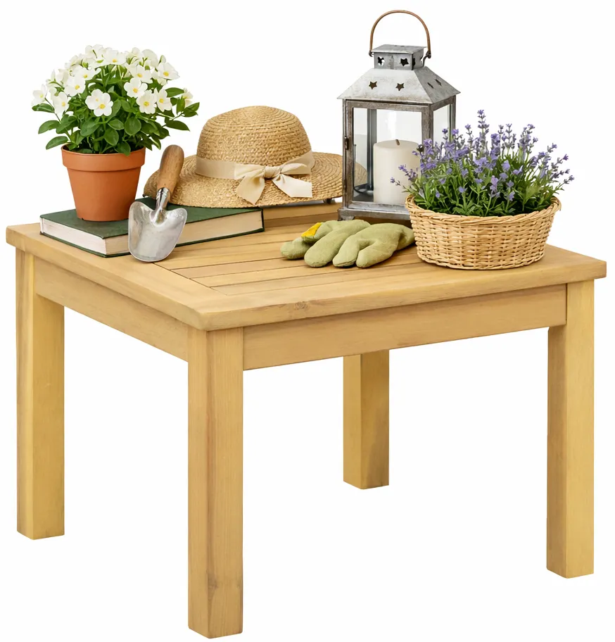 Ogród z drewnianym stolikiem kawowym Egle 4X