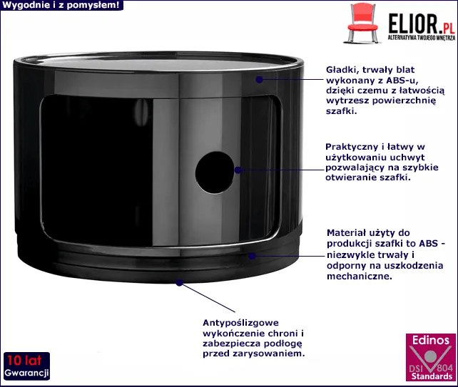 - Kolor: czarny. Kliknij w link sprawdź także inne szafki nocne w kolorze czarnym w sklepie Edinos.pl. Stwórz swój praktyczny zestaw mebli.