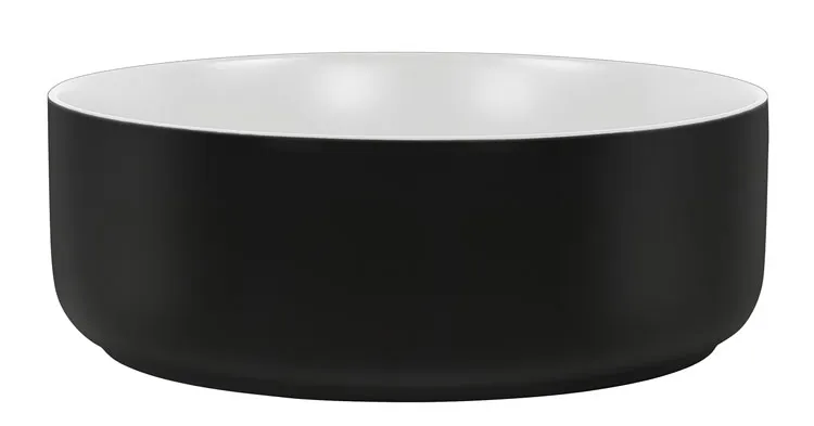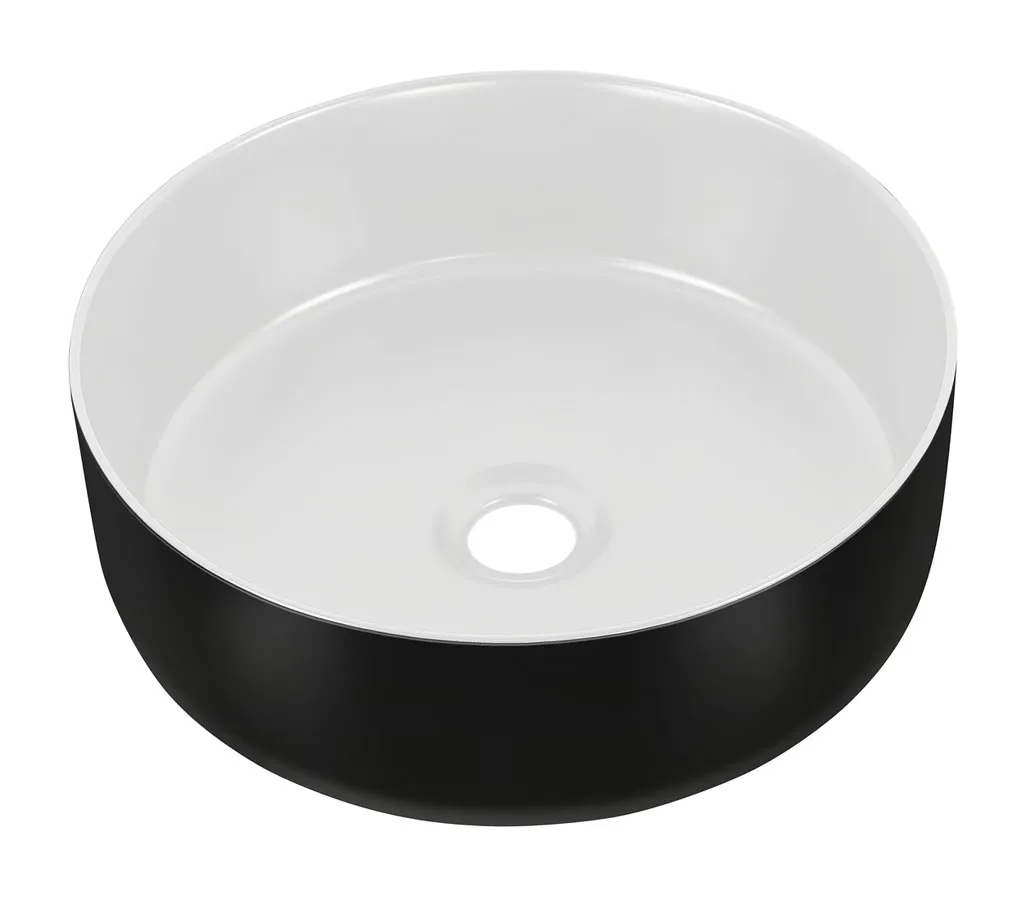 Okrągła czarno-biała umywalka nablatowa - Presto