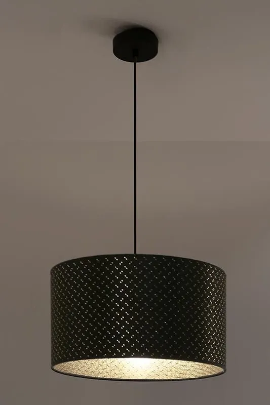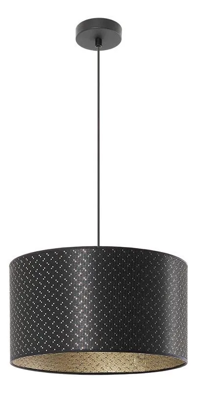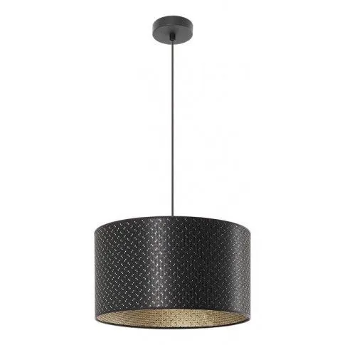E863-Viva to ekskluzywna oprawa oświetleniowa, która urzeka swoją elegancją i szykiem. Świetne połączenie kolorystyczne materiałowego abażura - czarny ze złotą nitką na zewnątrz i złoty wewnątrz sprawia, że lampa prezentuje się niezwykle wyjątkowo. Oprawa nie tylko posłuży jako źródło światła, ale także jako ozdoba każdego wnętrza, w którym będzie się znajdowała. Przyciągnie każdy wzrok i nada pomieszczeniu szlachetnego i eleganckiego charakteru. Jest to idealna propozycja dla tych osób, które doceniają niepowtarzalne aranżacje oświetleniowe. Lampa wisząca doskonale będzie współgrała z nowoczesnym, eleganckim stylem wnętrz. W piękny sposób oświetli salon, jadalnię, sypialnię, garderobę, przedpokój czy też biuro. Produkt został wykonany z materiałów najwyższej jakości, dzięki czemu będzie można cieszyć się jego wyglądem i funkcjonalnością przez wiele lat.