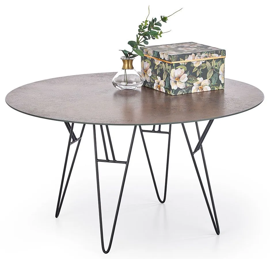 Okrągła ława z efektem kamienia Ombri - brązowa