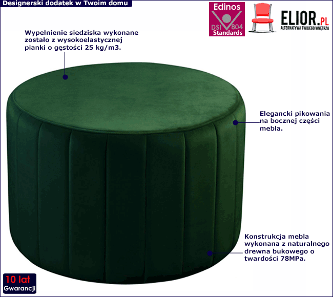 • Aż 68 kolorów tapicerki w 3 różnych rodzajach tkanin. Poinformuj nas o wybranym modelu w polu "Komentarz do zamówienia" lub drogą mailową. Kliknij w link i sprawdź także inne pufy okrągłe w sklepie Edinos.pl. Stwórz swój praktyczny zestaw mebli.