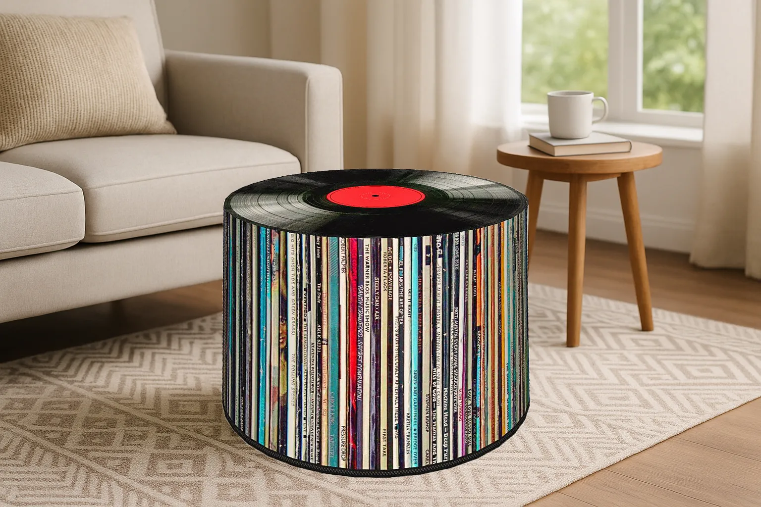 Dotyczy: Okrągła pufa do siedzenia z motywem drewna 17 wzorów - Klimer 2X