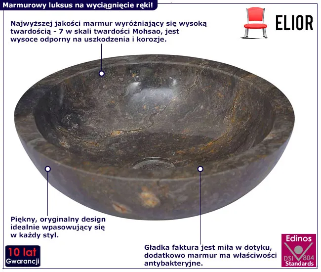 Czy marzysz o łazience, która emanuje elegancją i stylem? Umywalka Bitos od Elior to spełnienie tych marzeń! Ta okrągła, marmurowa umywalka nablatowa to prawdziwy klejnot w koronie każdego wnętrza łazienkowego.