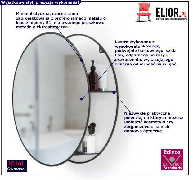 - Modna kolorystyka: czarne. Kliknij w link i sprawdź także inne lustra w sklepie Edinos.pl. Stwórz swój praktyczny zestaw mebli.