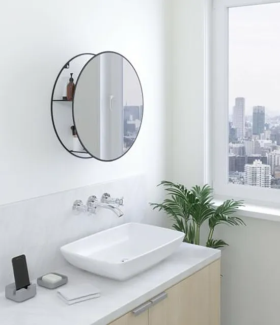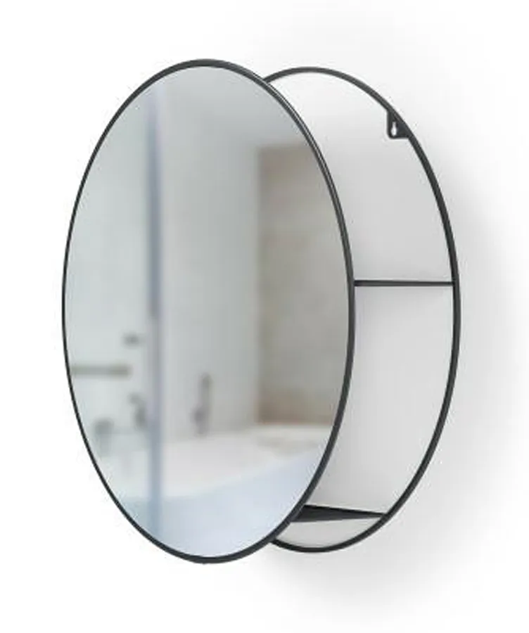 Lustro, które prezentuje się szlachetnie, minimalistycznie i nowocześnie? Proste, a zarazem efektowne? A do tego jeszcze praktyczne? Mamy takie lustro - to znakomite lustro z półką Sinet! Jego prostota oraz elegancja zachwycą każdego wielbiciela ponadczasowych form. Sinet łączy w sobie piękna taflę szkła z nieco loftową, minimalistyczną czarną ramą. Z tyłu lustra znajdują się dwie praktyczne półeczki, które sprawiają, że Sinet to nietypowa, oryginalna i jakże funkcjonalna propozycja. Sinet dzięki swej praktycznej formie wprost idealnie odnajdzie się w łazience. Ale nie tylko - to również doskonała propozycja do przedpokoju, salonu czy garderoby. Minimalistyczne, a zarazem pomysłowe i designerskie? To właśnie okrągłe lustro z półkami Sinet w czarnej ramie!
