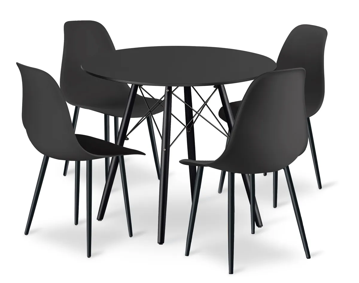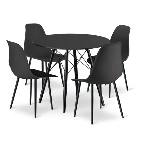 Okrągły czarny stół z 4 krzesłami - Duto 3X