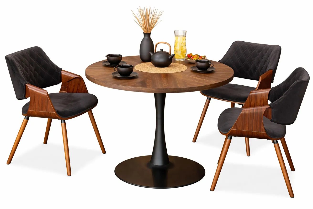 Okrągły industrialny stół z 3 krzesłami - Oxena