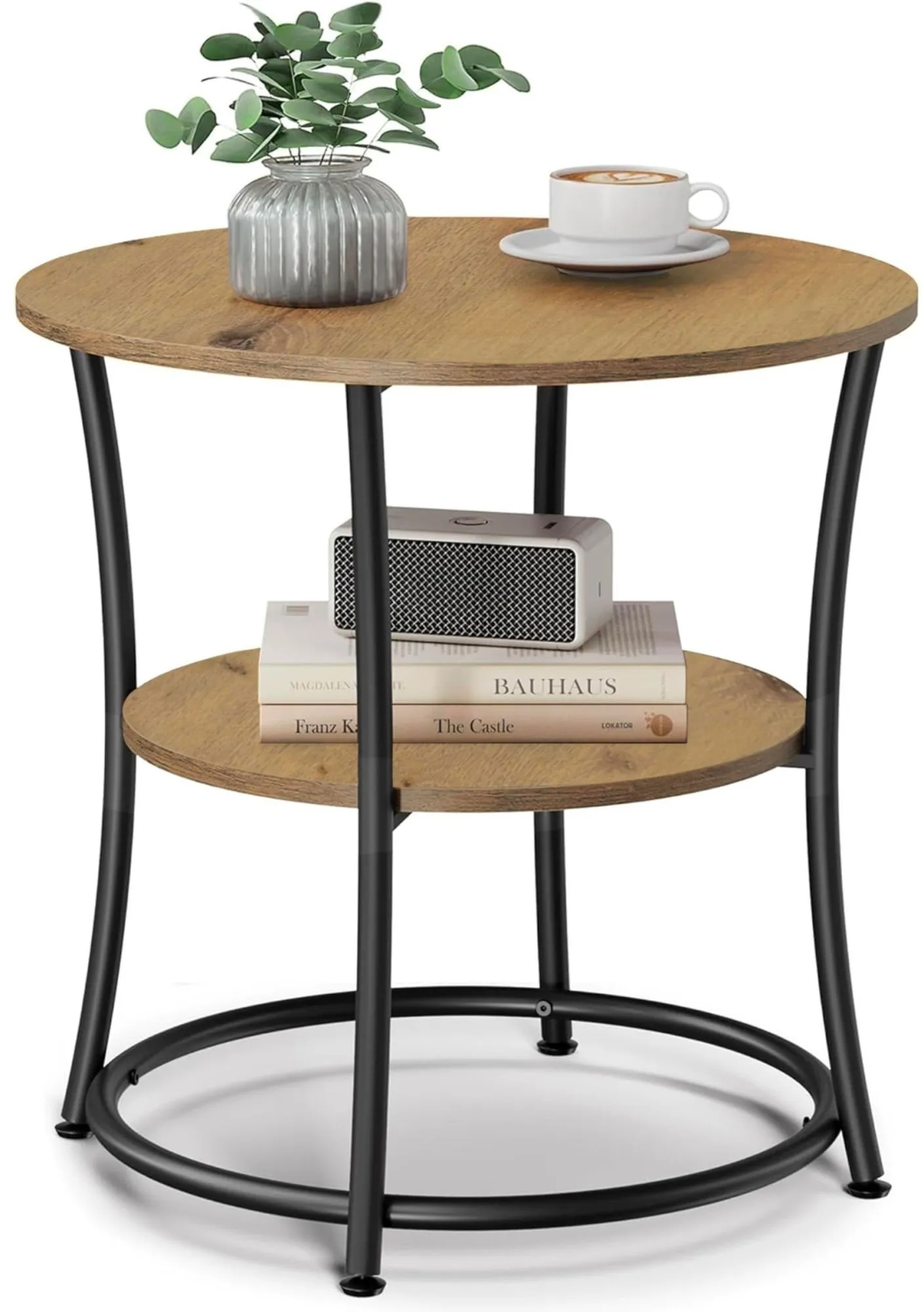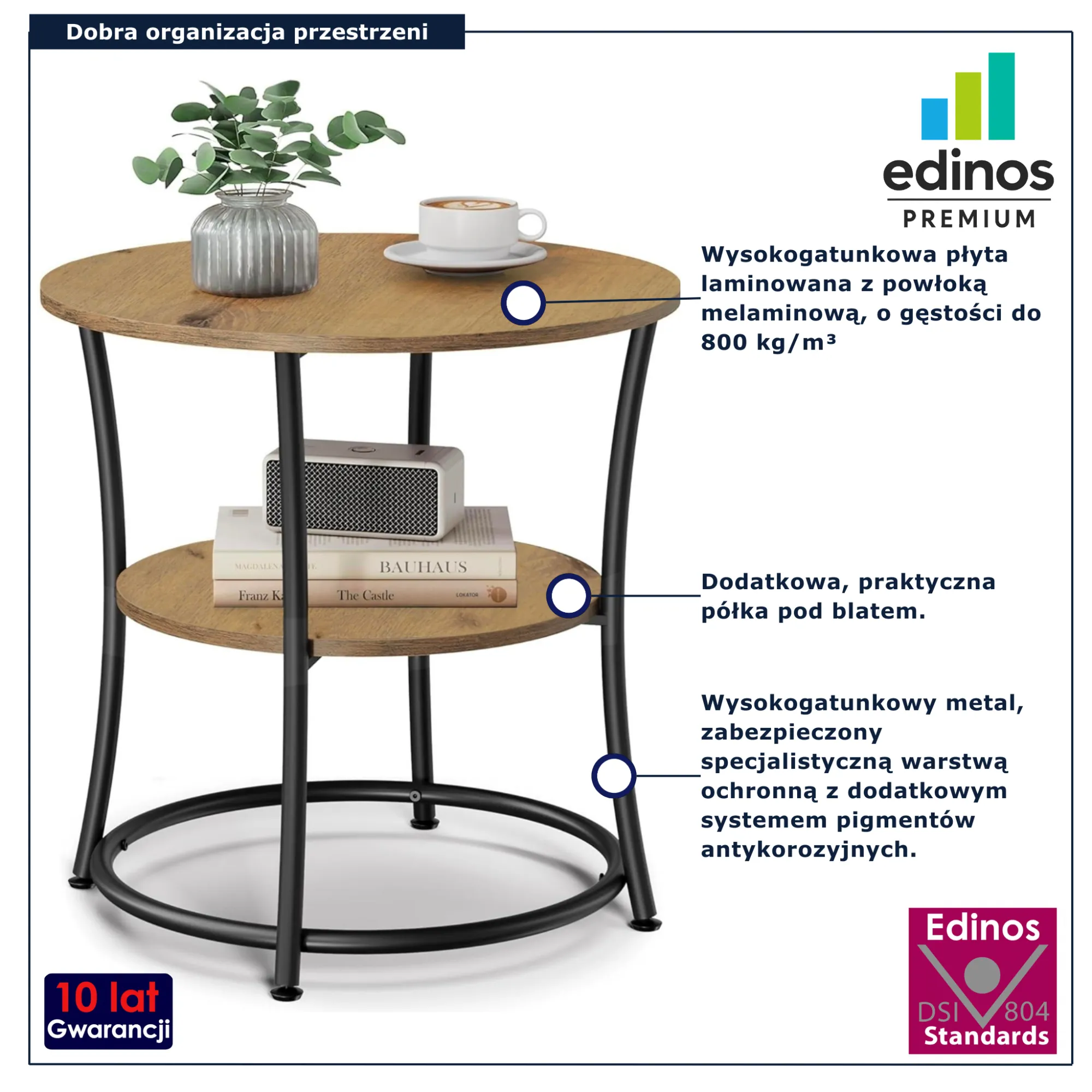 Okrągły loftowy stolik kawowy z półką dąb artisan - Tocador 18X