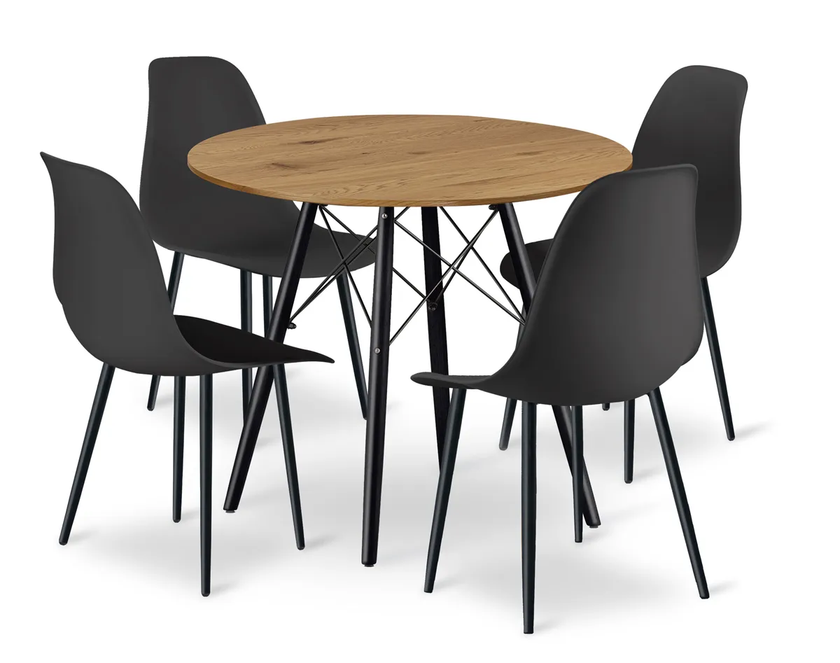 Okrągły nowoczesny stół z 4 czarnymi krzesłami - Duto 3X
