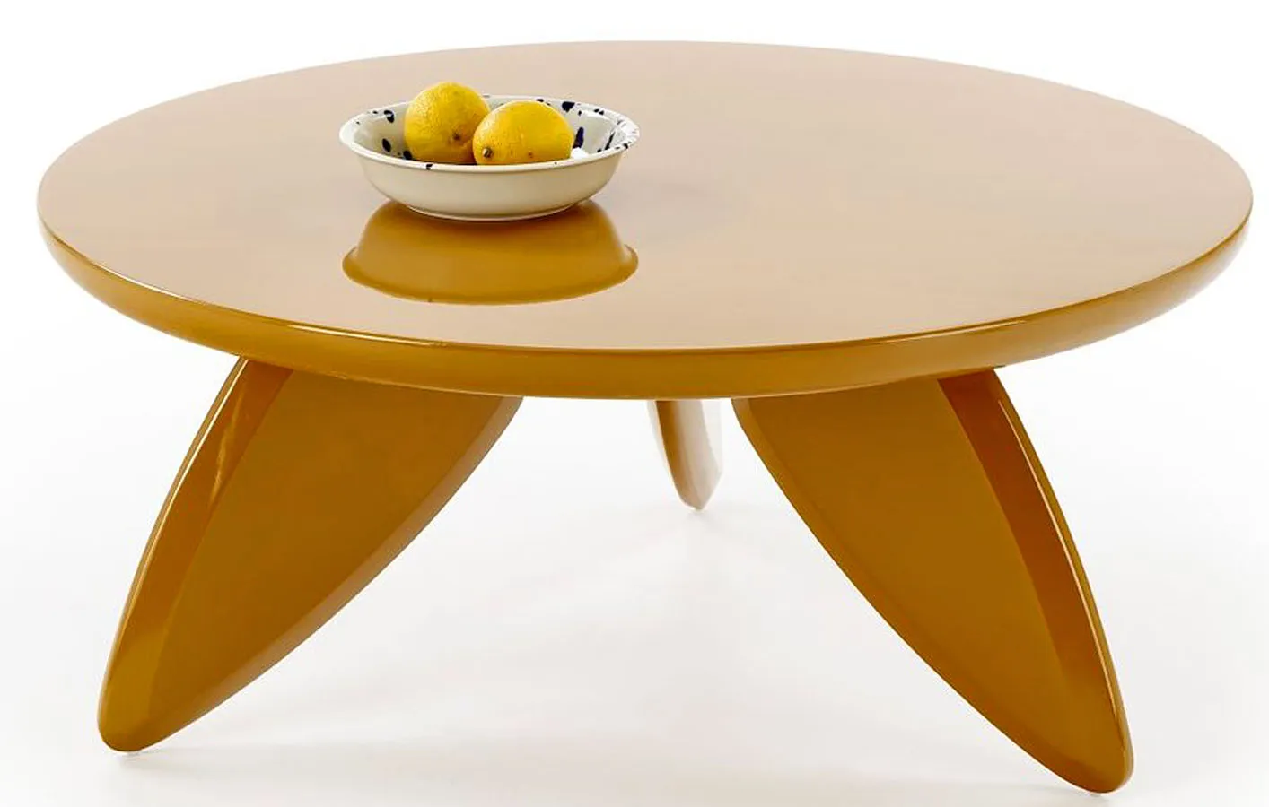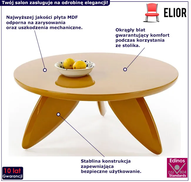 Okrągły nowoczesny stolik musztardowy - Harvel 4X