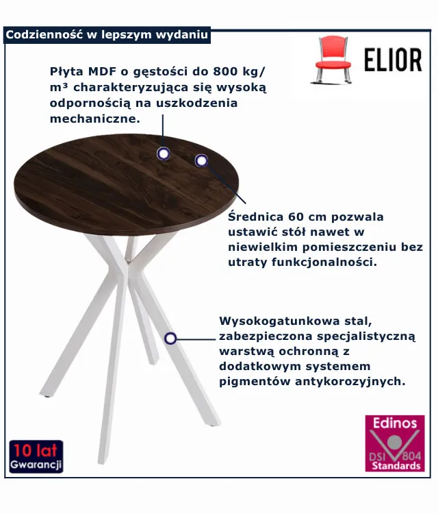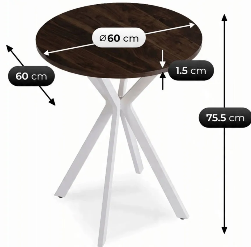 • Oszczędność miejsca – średnica 60 cm pozwala ustawić stół nawet w niewielkim pomieszczeniu bez utraty funkcjonalności.