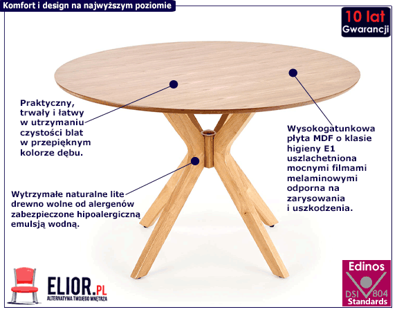 Okrągły stół minimalistyczny w kolorze dębowym - Froser