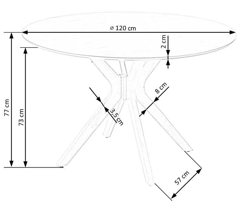 • Wymiary: średnica: 120 cm, wysokość: 77 cm.