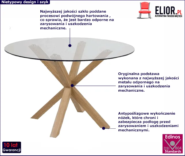 - Modna kolorystyka: bezbarwny, szklany blat i dębowa podstawa. Kliknij w link i sprawdź także inne szklane stoły okrągłe w sklepie Edinos.pl. Stwórz swój praktyczny zestaw mebli.