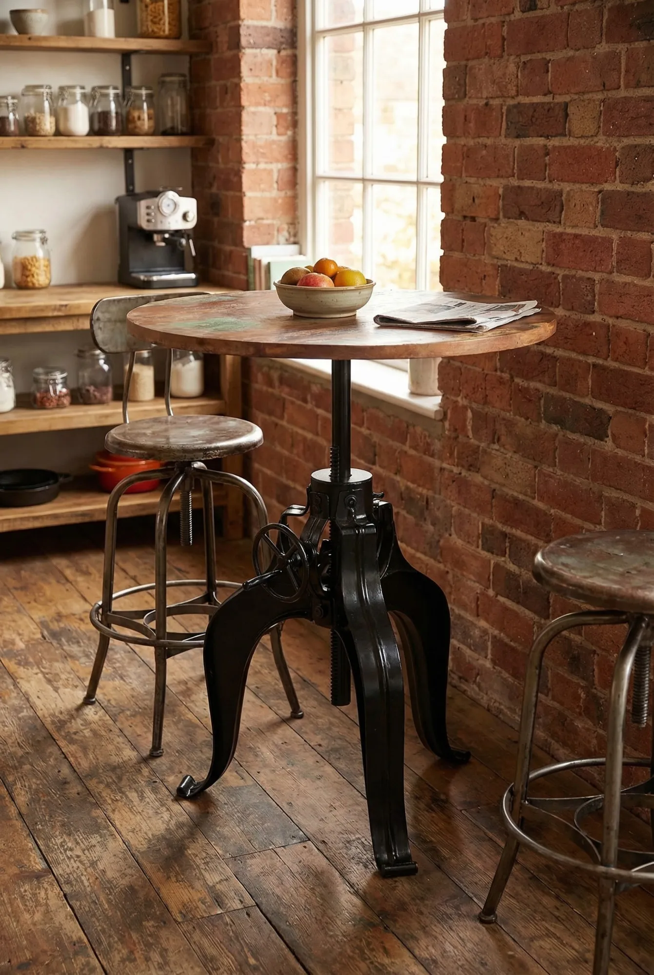 Jesteś zwolennikiem aranżacji, w której dominują brązowe, stonowane kolory? Lubisz klasykę w praktycznym wydaniu? Jeśli dobrze czujesz się w takich przestrzeniach to znak, że styl industrialny jest dla Ciebie. Właśnie w takim klimacie przygotowaliśmy dla Ciebie najnowszy projekt marki Edinos Premium – okrągły, regulowany stolik barowy Ira 3X. Daj się uwieść jego elegancji i oryginalnej formie.