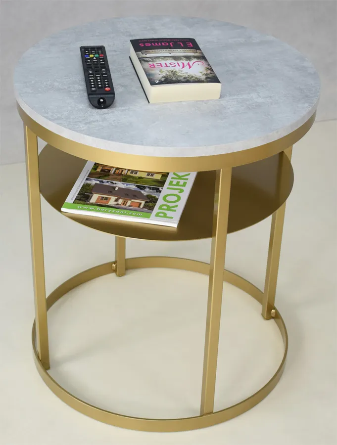 • Kolor: stelaż: złoty, blat: beton. Kliknij w link i sprawdź także inne okrągłe stoliki kawowe w sklepie Edinos.pl. Stwórz swóją praktyczną przestrzeń.