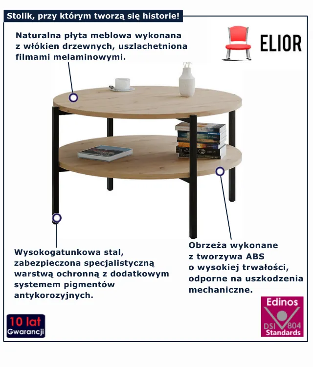 Niech Twój salon wreszcie zyska funkcjonalne i piękne centrum dowodzenia. Stolik kawowy Fablle 4X marki Elior to inwestycja w codzienny komfort i estetykę, która będzie Ci służyć przez lata. Jego 598 zł to niewielka cena za tyle korzyści i stylu. Nie czekaj i już dziś spraw, by Twój dom stał się jeszcze bardziej wyjątkowy – wybierz swój wymarzony stolik!
