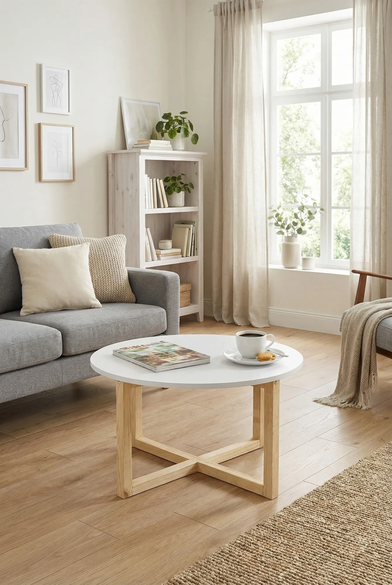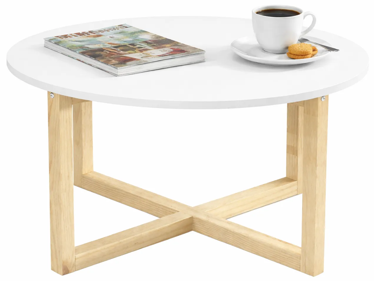 Stolik jest bardzo ładny i praktyczny — jego okrągły kształt dodaje przytulności wnętrzu, a odpowiednia wysokość sprawia, że świetnie pasuje przy kanapie czy fotelu. Stabilna konstrukcja i estetyczne wykonanie to duży plus.