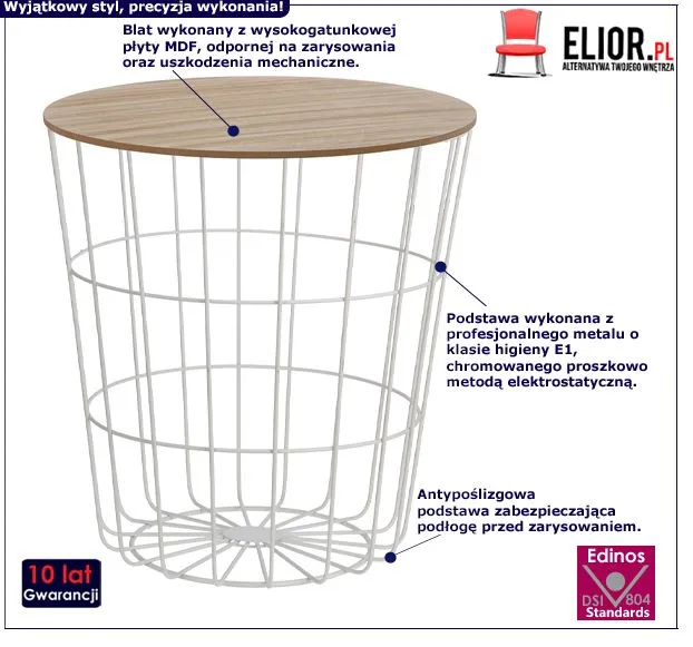 - Modna kolorystyka: biały, naturalne drewno. Zobacz także inne stoliki kawowe druciane z oferty Edinos.pl i wybierz dla siebie najbardziej odpowiedni model.