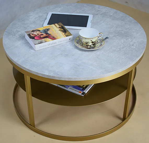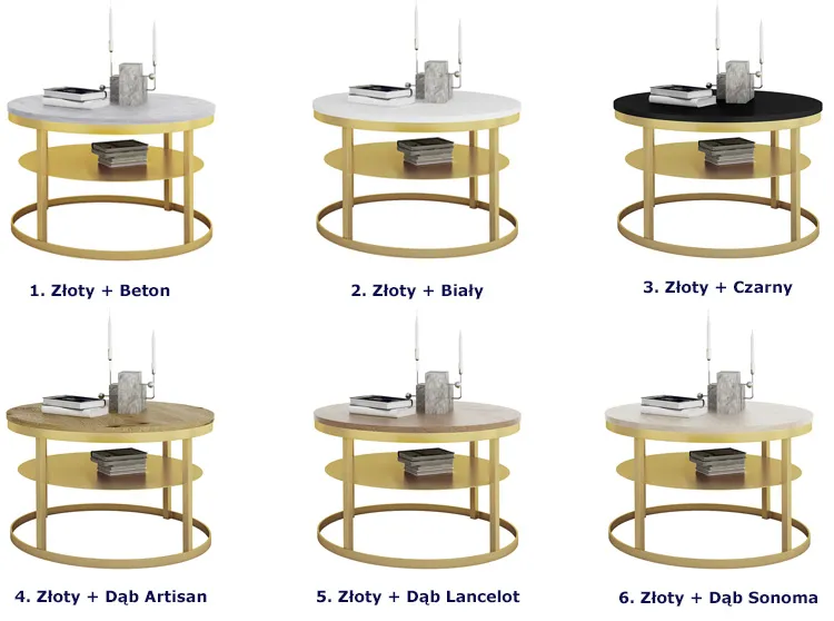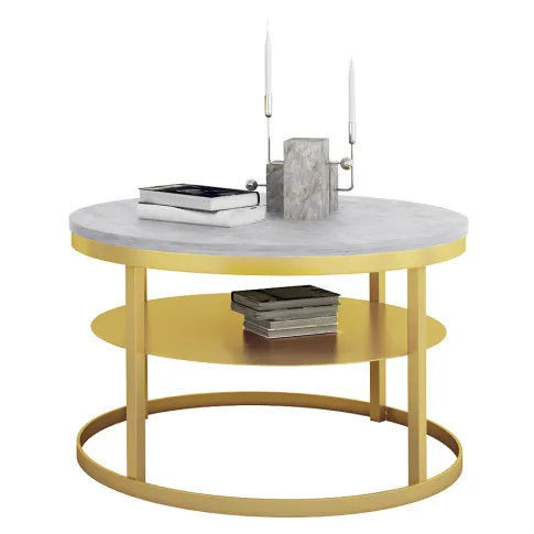 Dotyczy: Okrągły stolik kawowy z metalowym stelażem złoty + dąb sonoma - Selpa 3X