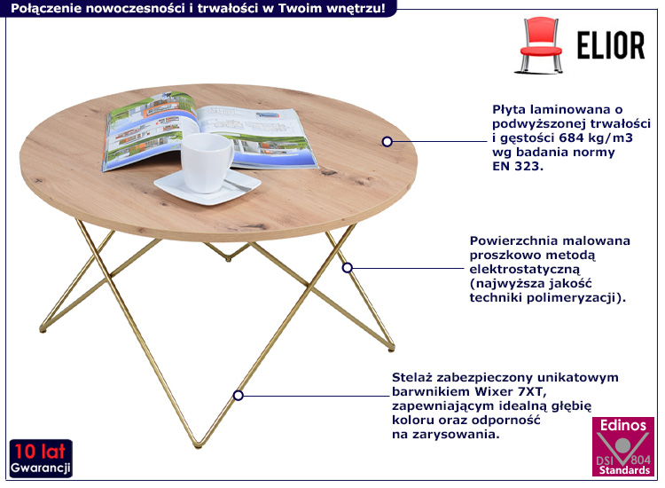 Dotyczy: Nowoczesny stolik kawowy ze złotym stelażem dąb lancelot - Noemi 3X