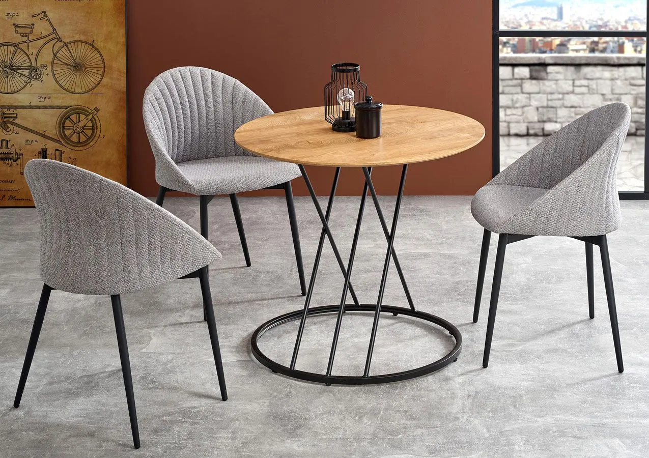 Zawsze, gdy wracasz po ciężkim dniu pracy, marzysz żeby odpocząć, napić się ciepłej herbaty, kawy albo wieczornego kieliszka wina. Nie zawsze jednak jest takie miejsce. Dlatego stolik Trigo jest odpowiedzią na ten problem. Wygodnie zasiądziesz w jego towarzystwie, położysz swój ulubiony napój i będziesz w spokoju delektować się jego widokiem. Ujmujący design przywodzi na myśl same miłe wspomnienia i pozwala rozkoszować się jego olśniewającą estetyką. Zgrabny, stylowy i szlachetny stolik zamknięty w prostej formie. Jego fenomen polega na tym, że nie posiadając krzykliwej kolorystyki i futurystycznych elementów wciąż ściąga na siebie wzrok wszystkich oczu. Każdy, kto docenia kunszt aranżacyjny i dekoratorski nie przejdzie obok niego niewzruszony. Dzięki stolikowi Trigo nie będziesz nawet potrzebować dekoracji, gdyż jest on ozdobą sam w sobie. Gdziekolwiek go postawisz, będzie tam gwiazdą olśniewającą wszystko dookoła. Spektakularny, nietuzinkowy design, oryginalna konstrukcja zachwycają za każdym razem, gdy na niego spojrzysz. A funkcjonalność? To jego drugie imię. Okrągły blat jest na tyle uniwersalny, że zmieścisz na nim wiele rzeczy mając wszystko w zasięgu ręki. Musisz popracować przy komputerze? Posłuży Ci jako praktyczne biurko na laptopa. Wizyta przyjaciółki? Spotkanie z koleżankami? Stolik Trigo czeka i z przyjemnością stanie się ławą na kawę i ciasto. Dodatkowo posiada niezwykle funkcjonalny blat odporny na zabrudzenia, co pozwala utrzymać go w nienaruszonym stanie. Stół Trigo świetnie sprawdzi się w Twoim salonie, pokoju dziennym, a nawet sypialni. Jego zastosowanie może ograniczyć tylko wyobraźnia. Jedno jest pewne, zawsze będzie wspaniałym elementem aranżacyjnym i praktycznym, uroczym stolikiem. Pokochają go wnętrza loftowe, nowoczesne, minimalistyczne. Z pewnością i Ty pokochasz ten czarujący stolik, jak tylko będziesz go mieć w swoim domu.