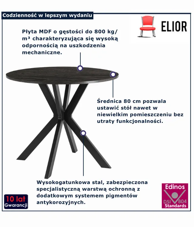 Dotyczy: Okrągły stolik nowoczesny dąb rustykalny + czarny - Kaxi 3X