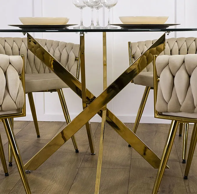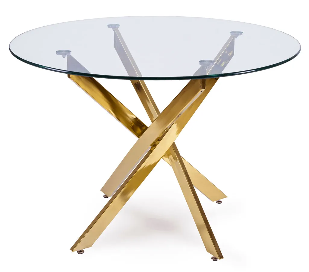 Okrągły szklany stół na złotej podstawie glamour - Amira