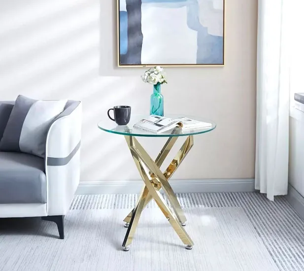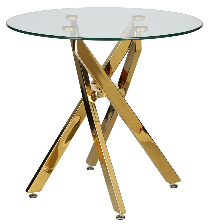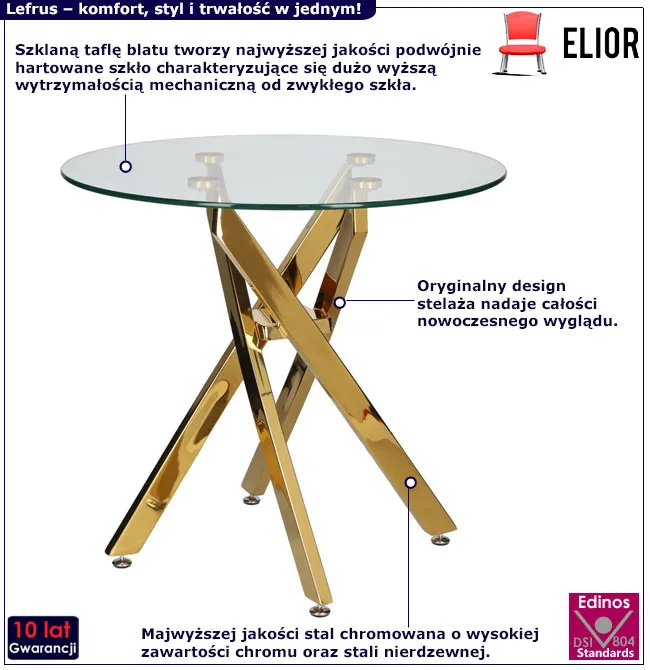 Okrągły szklany stolik kawowy ze złotym stelażem - Tumlis