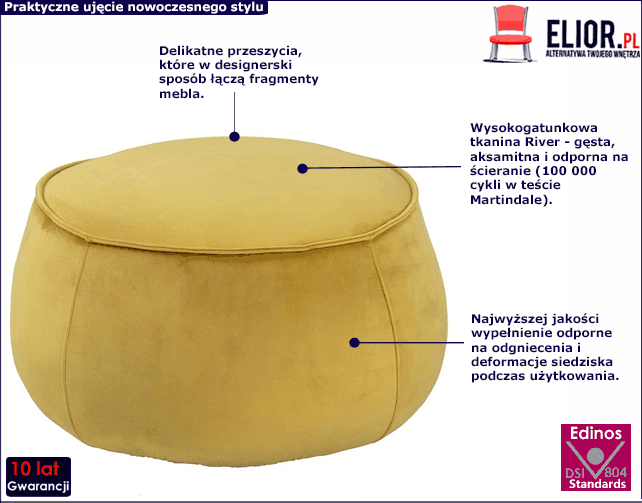 • Modna kolorystyka: żółty. Kliknij w link i sprawdź także inne pufy w sklepie Edinos.pl. Stwórz swój praktyczny zestaw mebli.